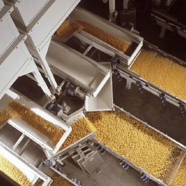 Alimentadores, elevadores a tazas, extractores, zarandas vibrantes, descensores a espiral y transportación hasta envasadoras.